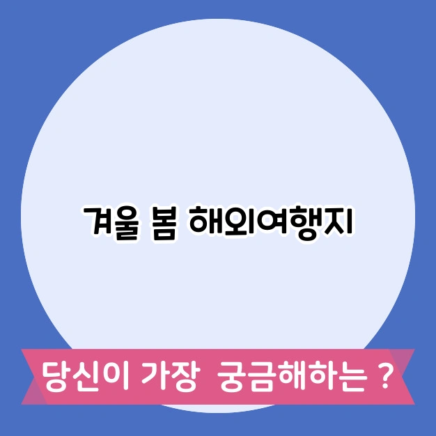 겨울이 오면 많은 사람들이 따뜻한 곳으로 떠나고 싶어 합니다. 저도 매년 겨울이 되면 여행을 계획하곤 하는데요. 이번에는 제가 경험한 겨울 봄 해외 여행지와 준비물, 그리고 유의사항에 대해 이야기해보려고 합니다.