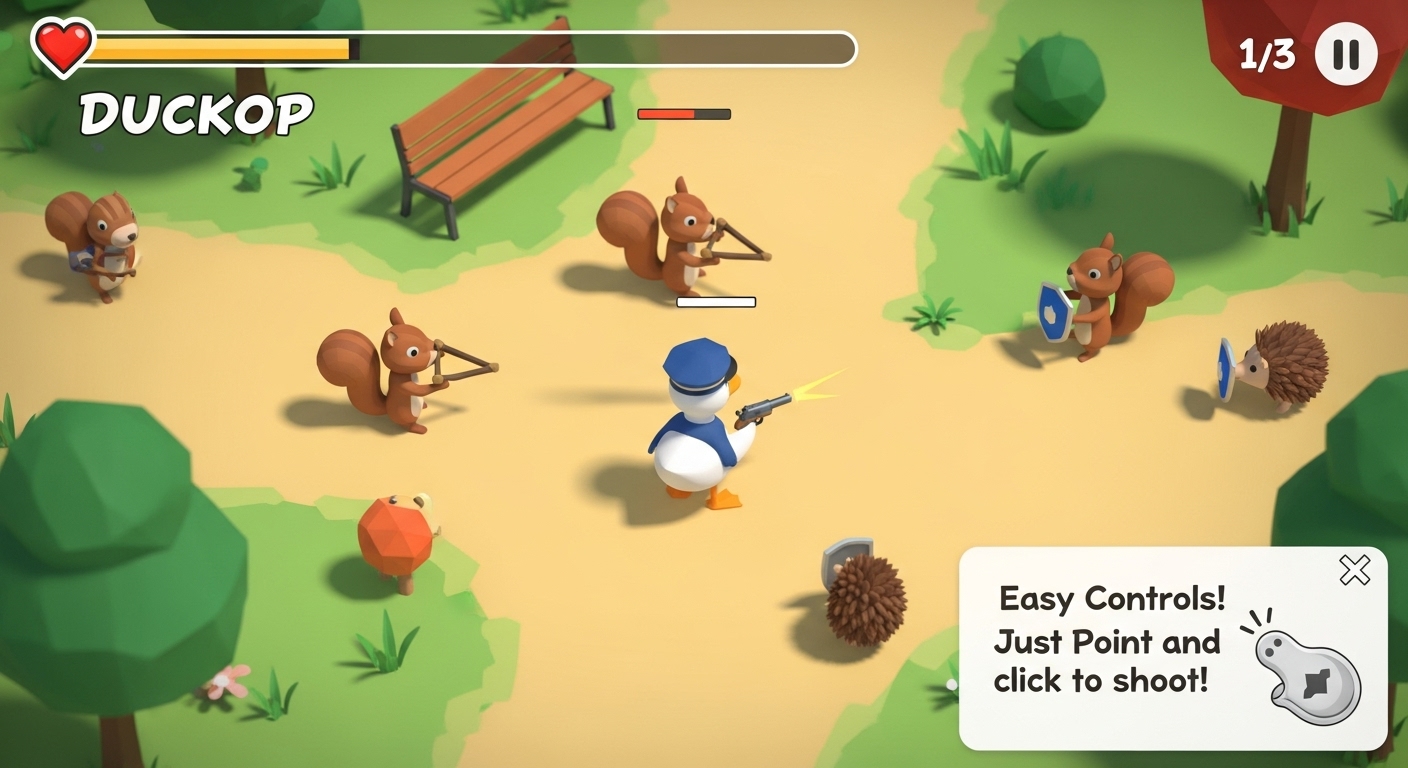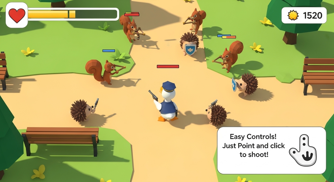 - [친근한 진입 장벽]: 귀여운 오리 캐릭터와 직관적인 탑뷰 시점 으로 초보자도 쉽게 입문 가능!