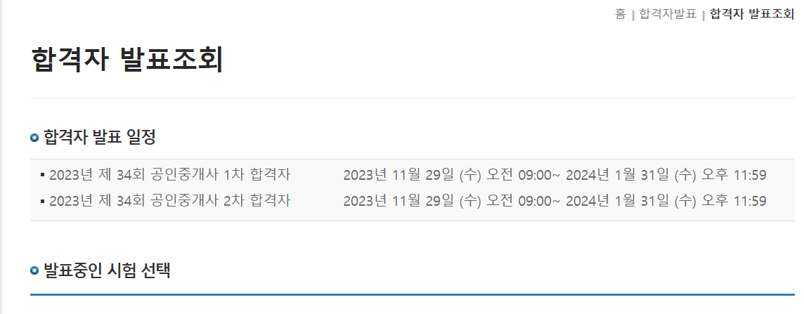 34기 공인중개사 공고일정 및 합격자 가답안 확인방법