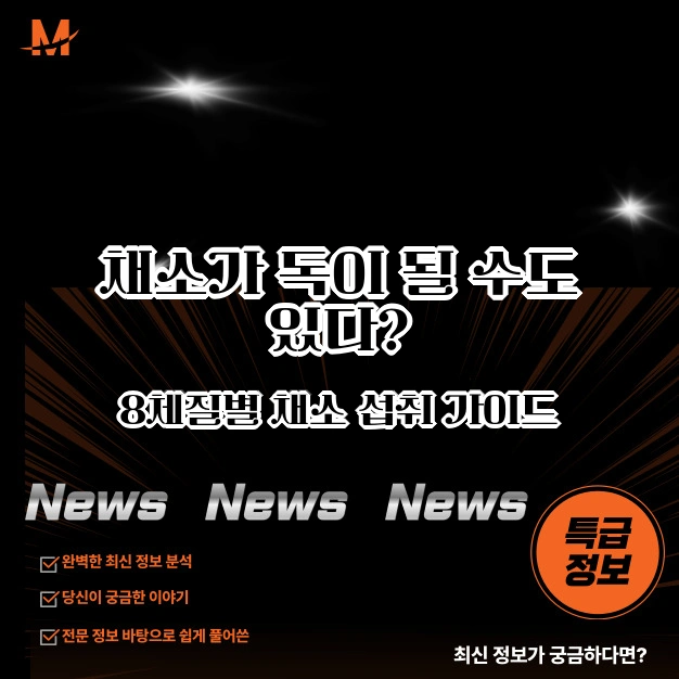 안녕하세요! 요즘 건강을 위해 채소 위주 식단으로 바꾸시는 분들 정말 많으시죠? 저도 한때 무조건 채소만 많이 먹으면 건강해진다고 믿었는데, 오히려 소화가 안 되고 몸이 더 무거워진 적이 있어요. 알고 보니 사상의학·팔체질 의학에서는 체질에 따라 채소가 독처럼 작용할 수 있다는 사실! 오늘은 8체질(간형, 심형, 비형, 폐형, 신형, 담형, 위형, 대장형) 중 채소 섭취에 주의해야 할 체질과 맞춤 팁을 알려드릴게요.