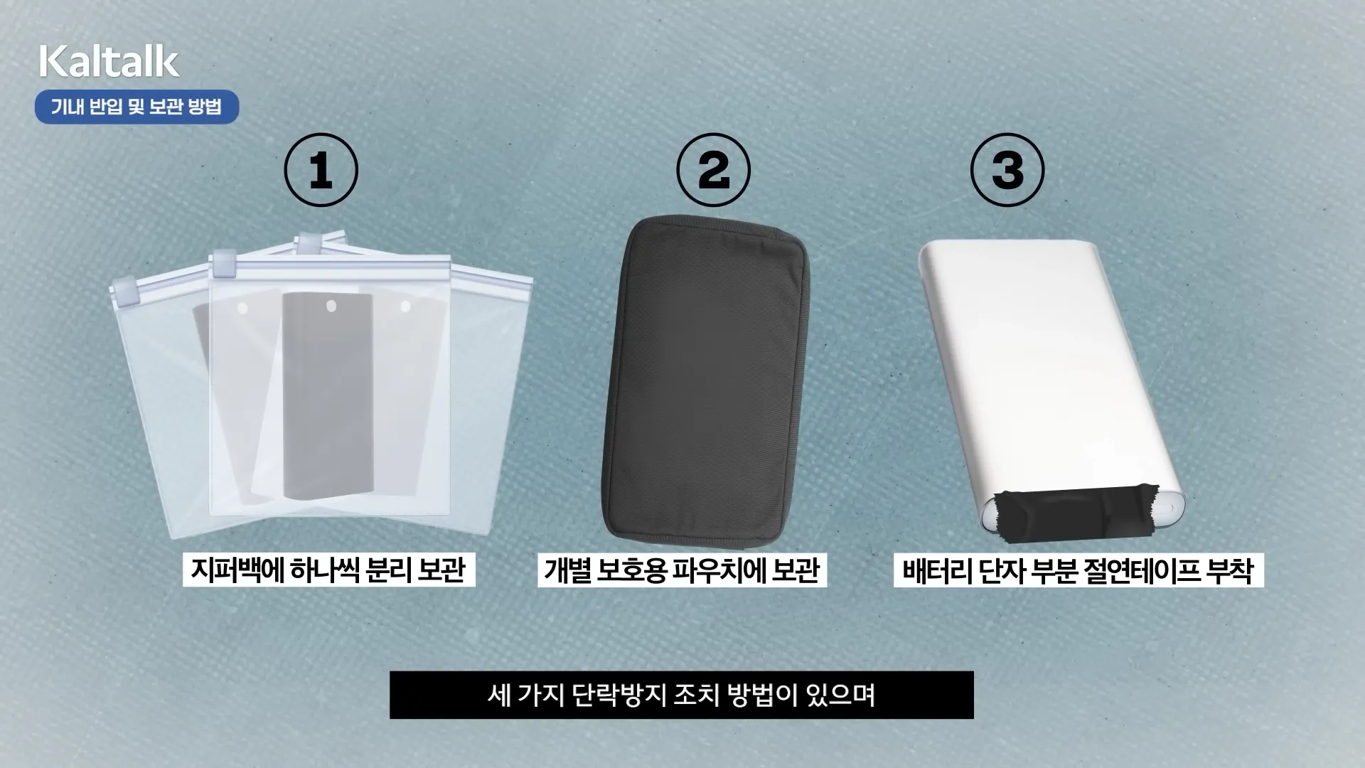 지퍼백 개별 포장, 보호 파우치 또는 절연 테이프 부착 등 단락 방지 조치를 잊지 마세요.