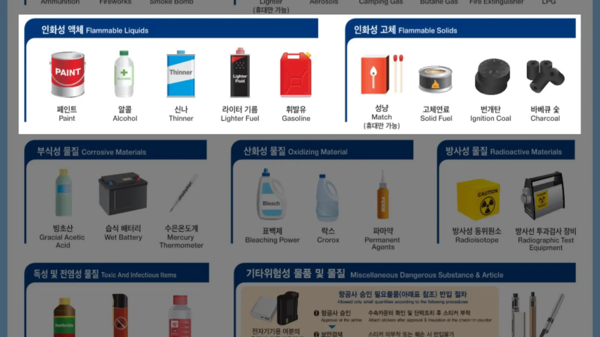 여기서 '액체류'란 단순히 음료수만 말하는 게 아니에요. 로션, 선크림, 샴푸, 치약, 심지어 고추장이나 김치도 액체류에 포함되니 주의하세요!